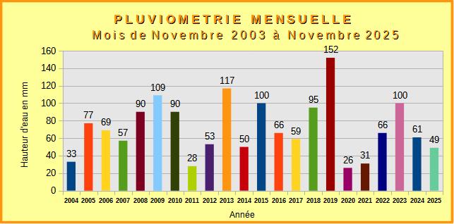 Le graphique ci-dessus permet de visualiser en mm la hauteur d'eau tombée chaque mois de novembre